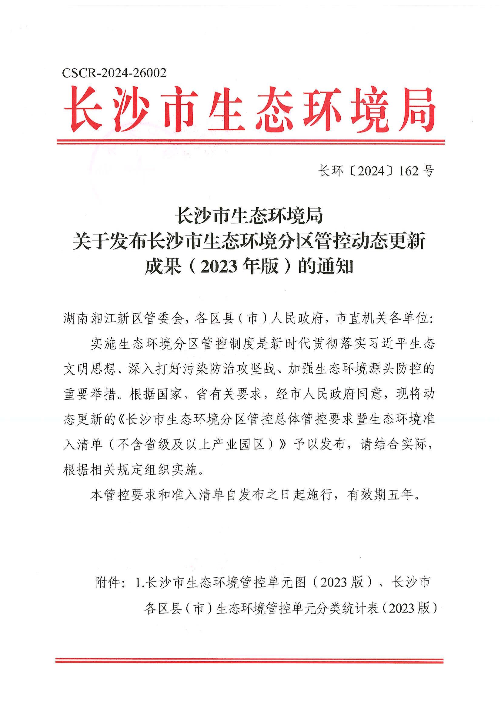 長沙市生態(tài)環(huán)境局關(guān)于發(fā)布長沙市生態(tài)環(huán)境分區(qū)管控動態(tài)更新成果(2023年版)的通知